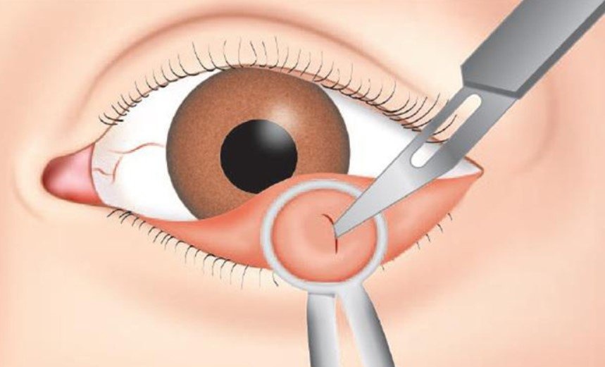 Затем в область, где будет сделан разрез, вводится анестетик. Градина зажимается пинцетом для предотвращения кровотечения, после чего врач делает надрез и удаляет содержимое вместе с капсулой. Манипуляция не доставляет пациенту дискомфорта, поскольку анестетик устраняет болевые ощущения.